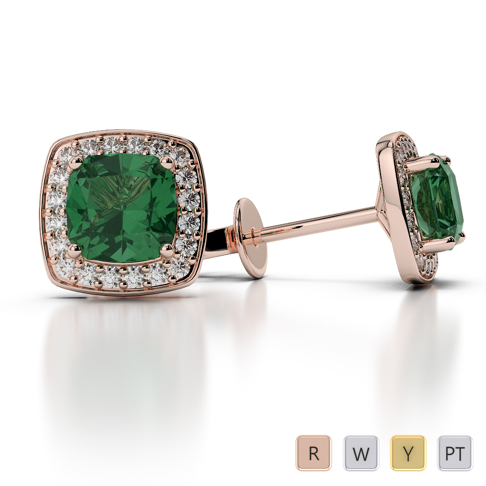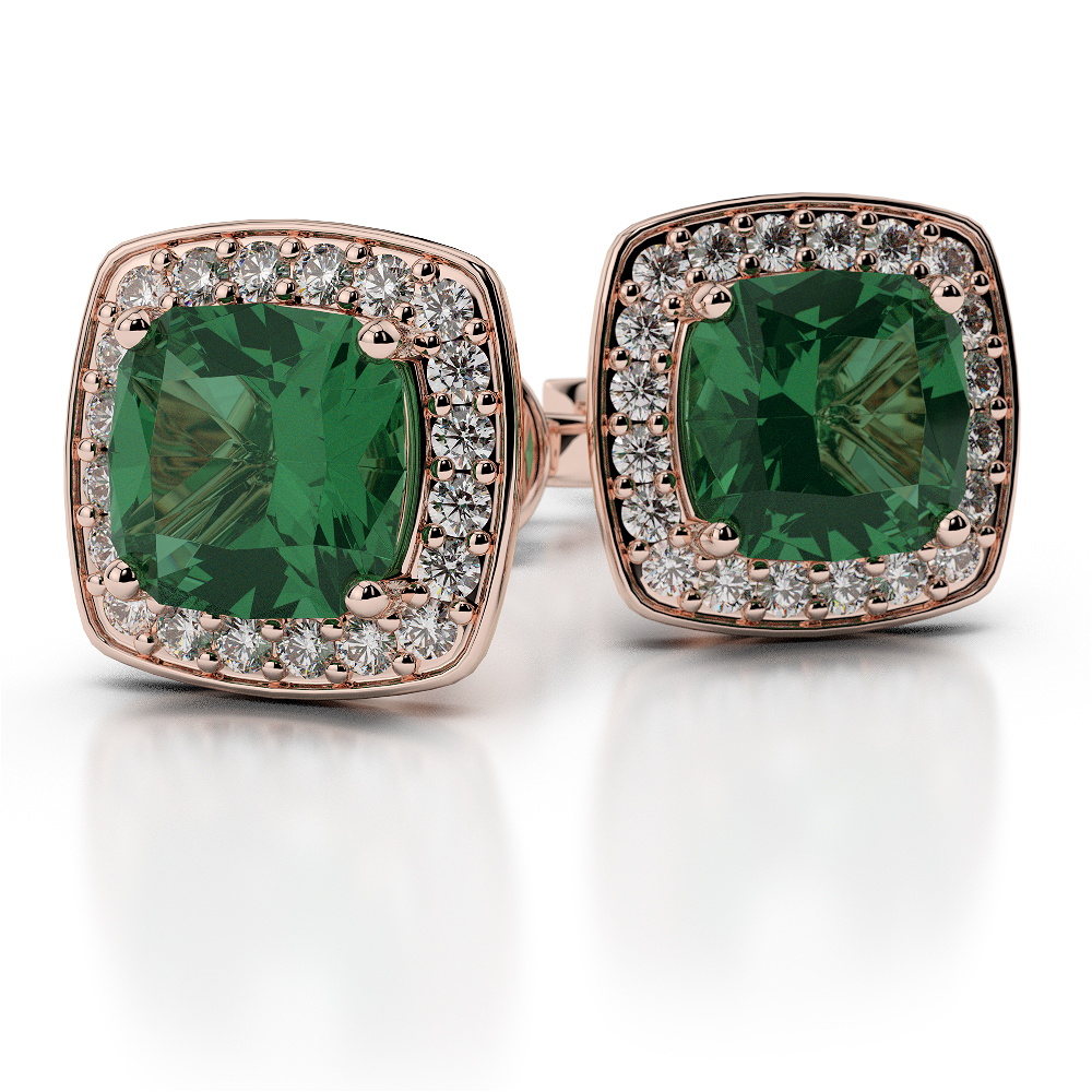 These beautiful gold 9Kt Rose Gold Cushion Emerald Diamond Earrings are something very special that just need to be seen to be believed. Adding a touch of glamour to every outfit, these fabulous Diamond Earrings feature a unique screw back lock system that will ensure your earrings stay securely in your ear where they belong. Sparkling Round Brilliant Diamonds ensure the gorgeous emerald at the centre stands out perfectly and add the perfect balance of bling and elegance. Ideal for a birthday or anniversary present or just when you need to say you love her.