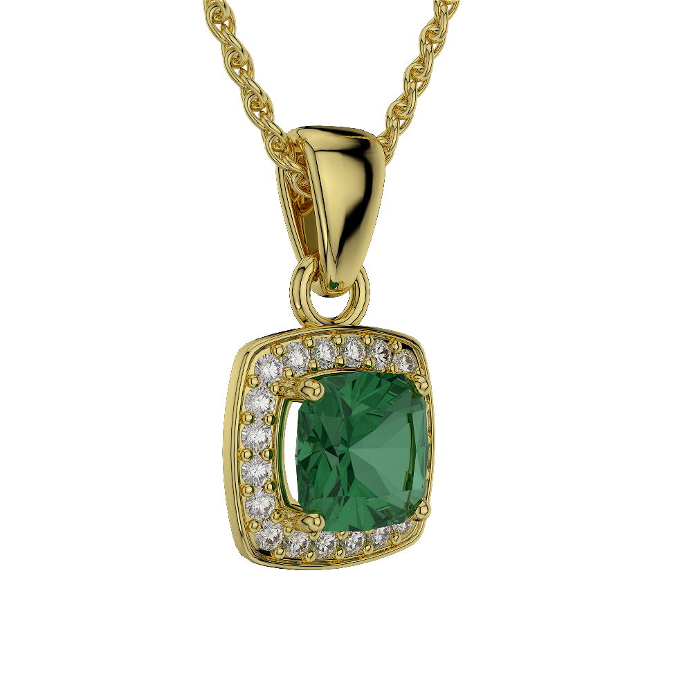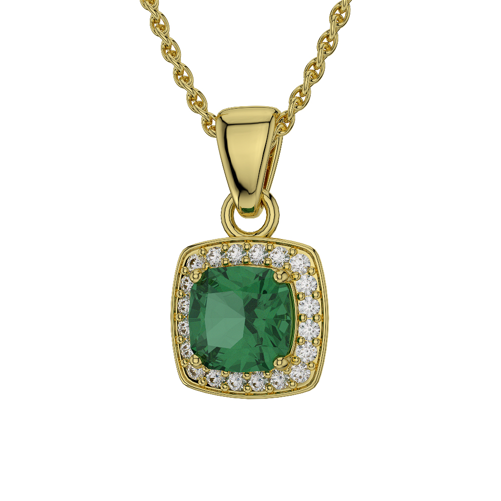 Cushion Shape Emerald and Diamond Necklaces in Gold / Platinum AGDNC-1061