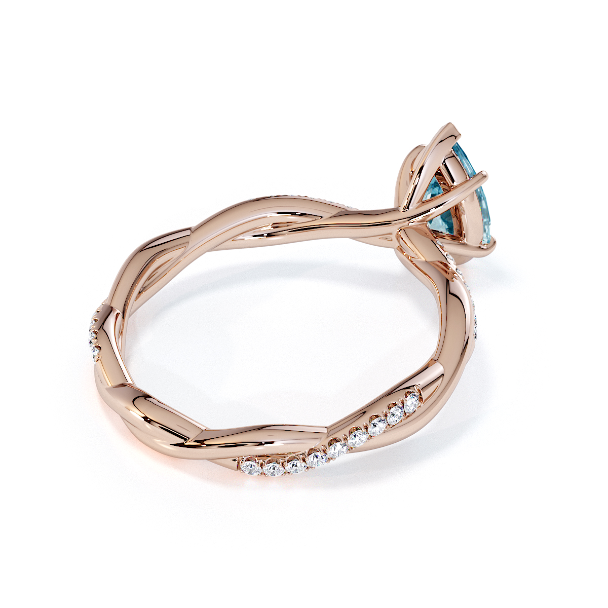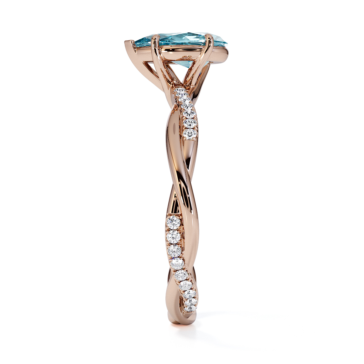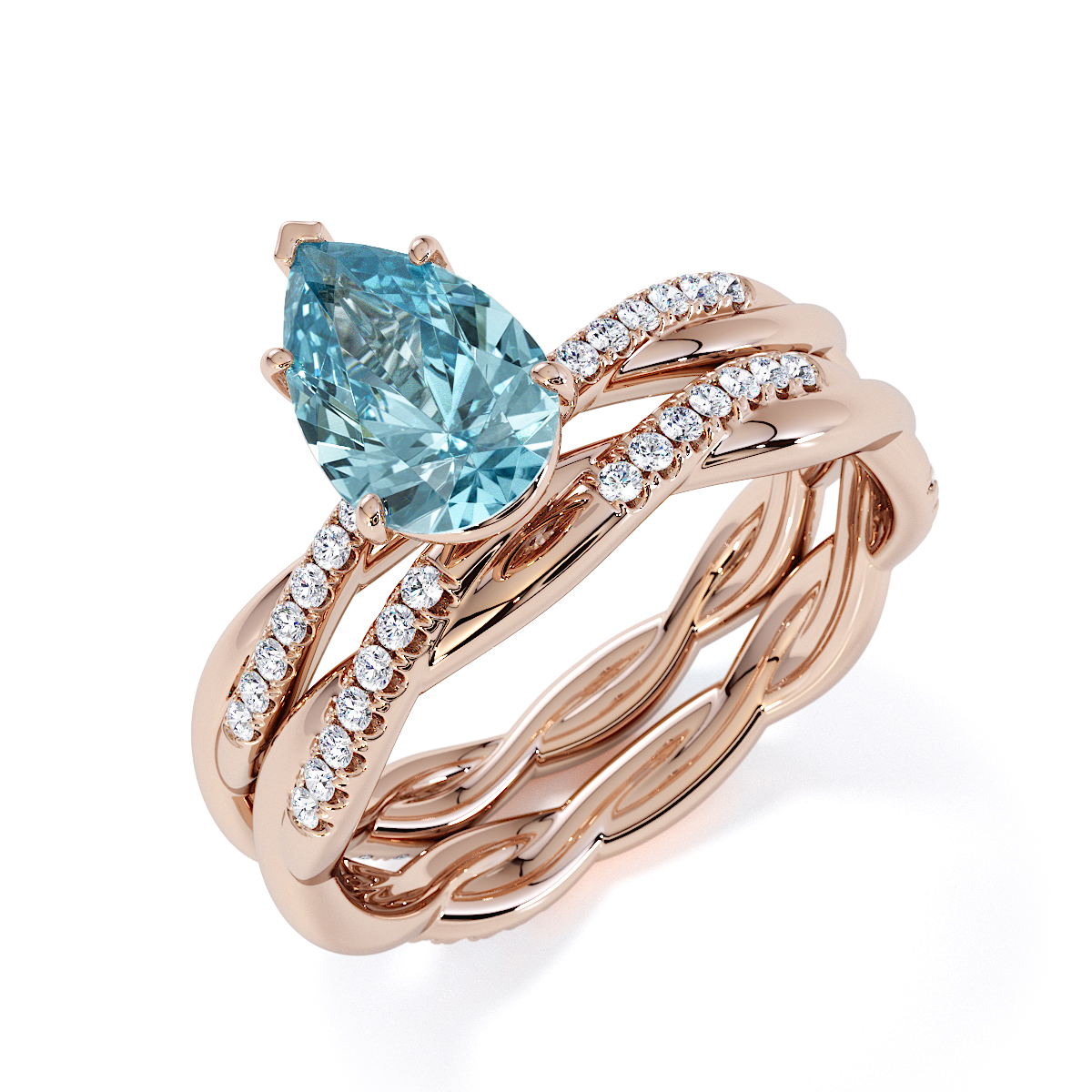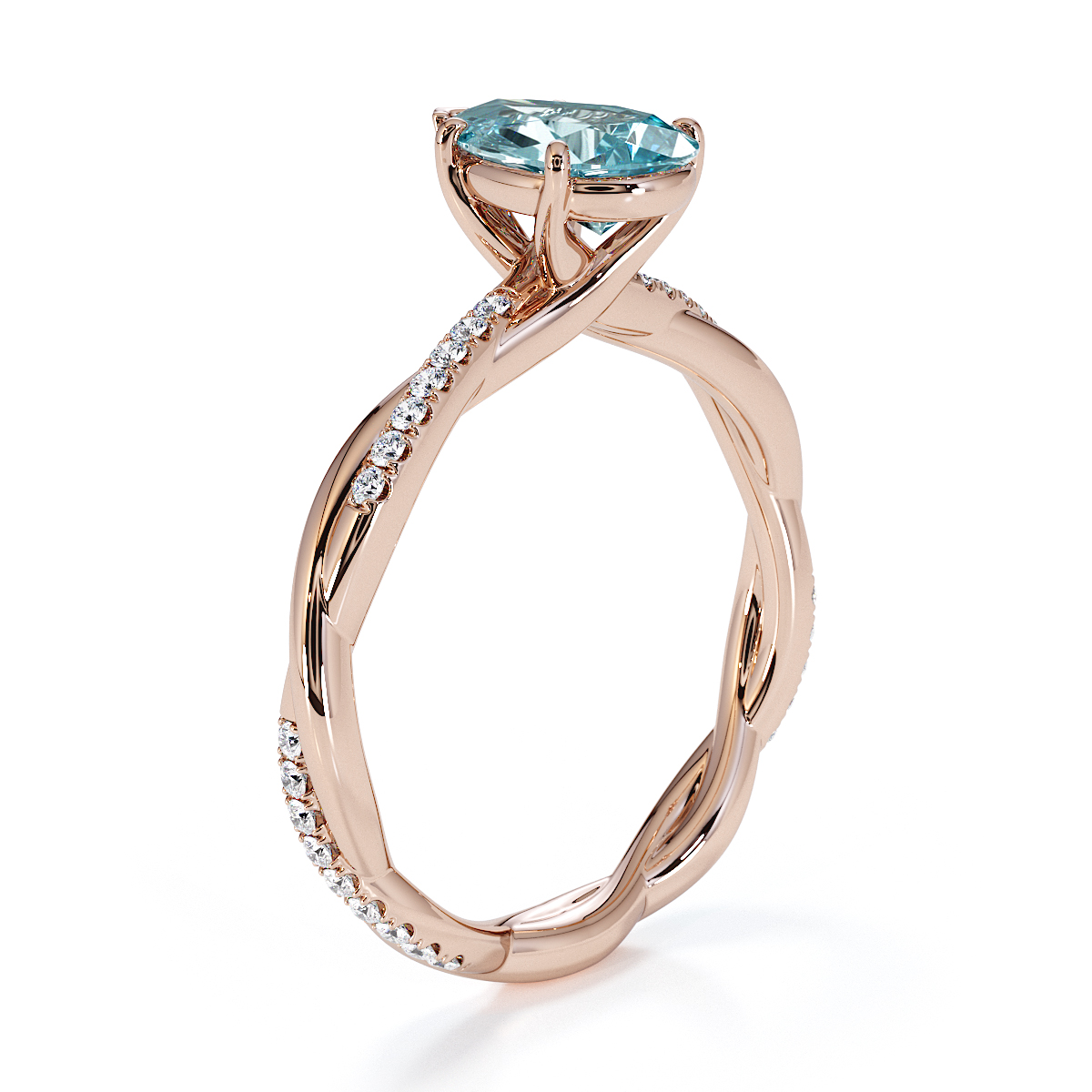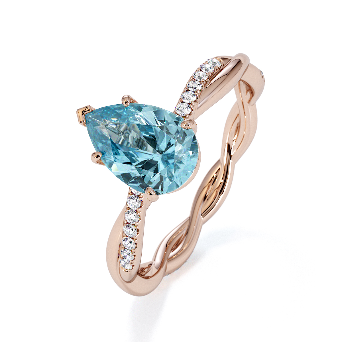 Featuring a gorgeous pear-shaped Aquamarine and Diamond Engagement Ring with prong-set round diamonds running up the twisted shoulders, This engagement ring beautifully complements the wedding ring of your choice.