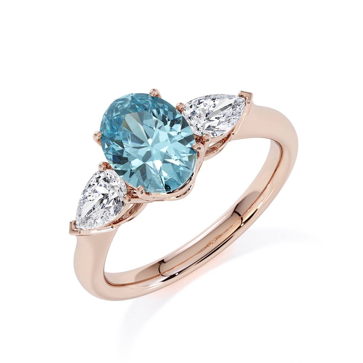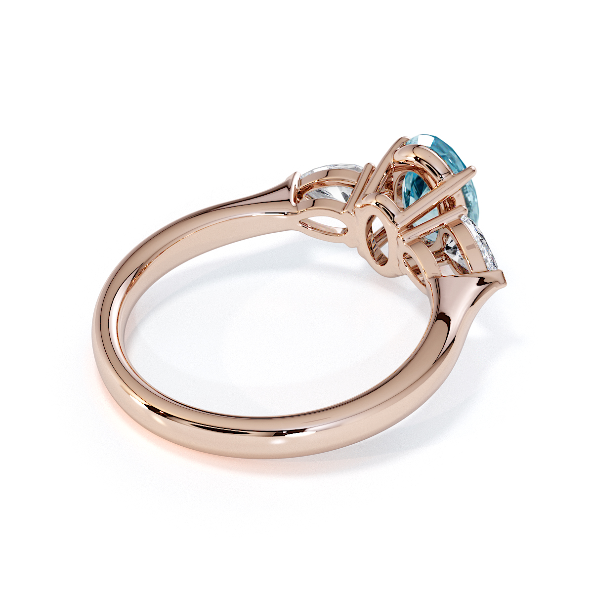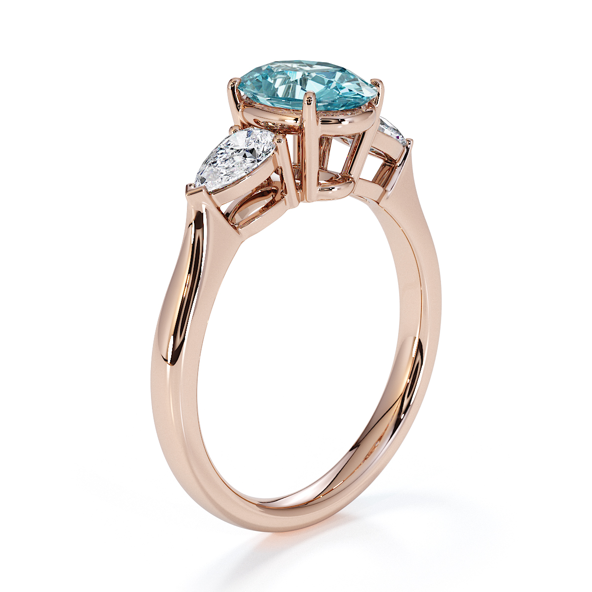 Introducing our exquisite oval-cut Aquamarine and Diamond Engagement Ring, adorned with pear-shaped side stones delicately prong-set.