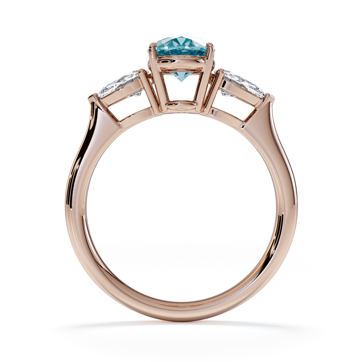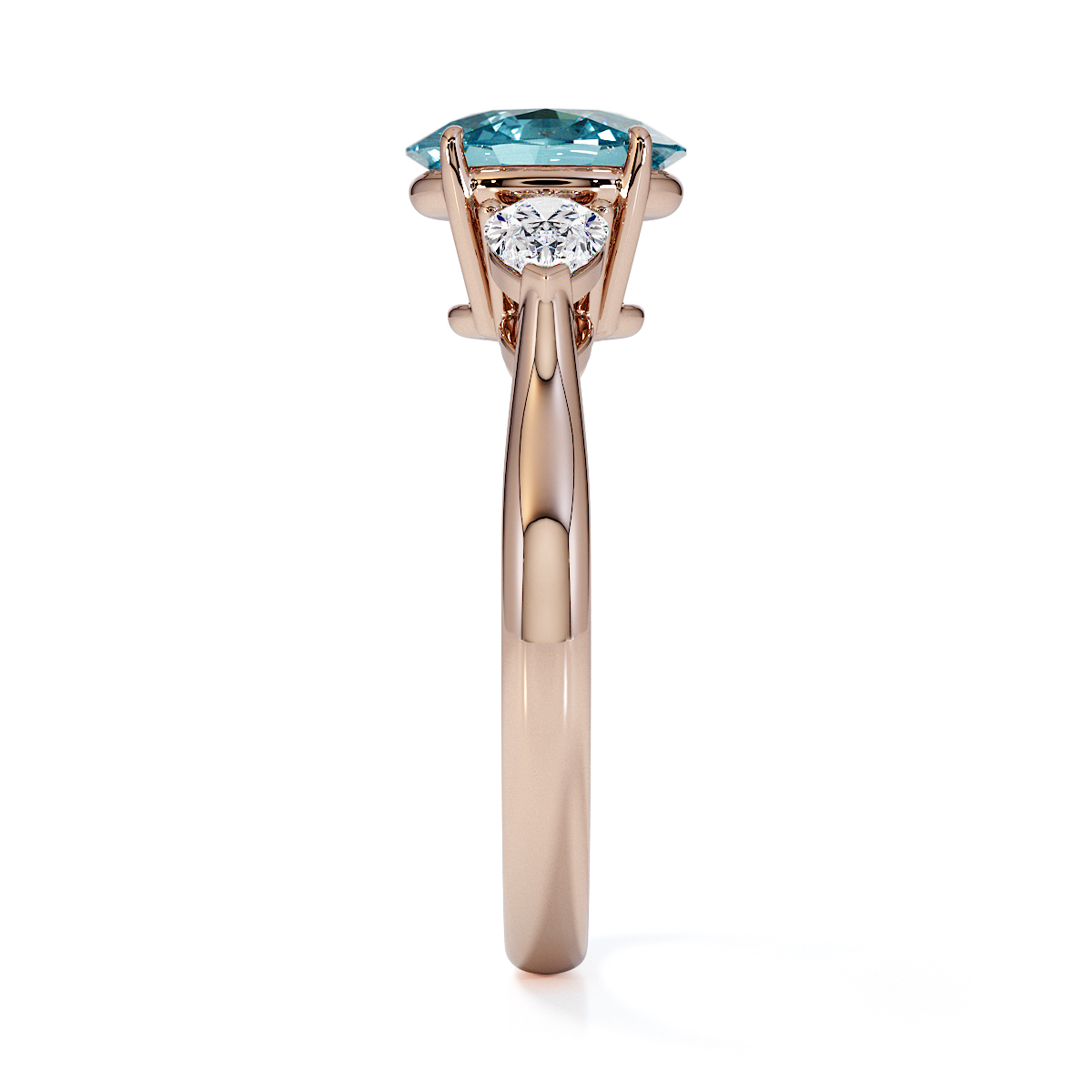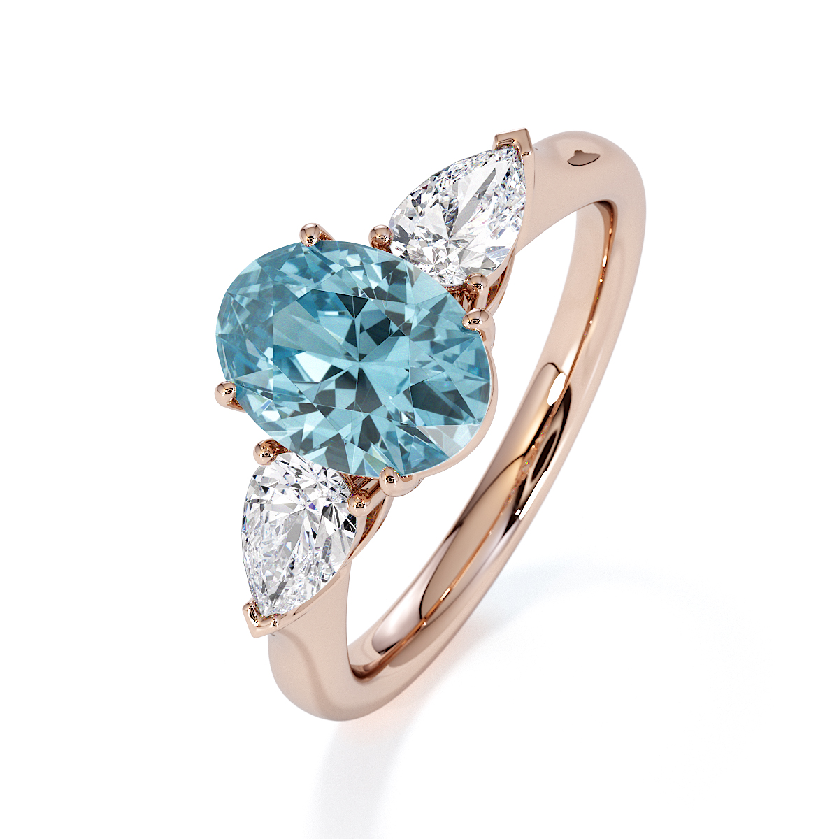 Introducing our exquisite oval-cut Aquamarine and Diamond Engagement Ring, adorned with pear-shaped side stones delicately prong-set.