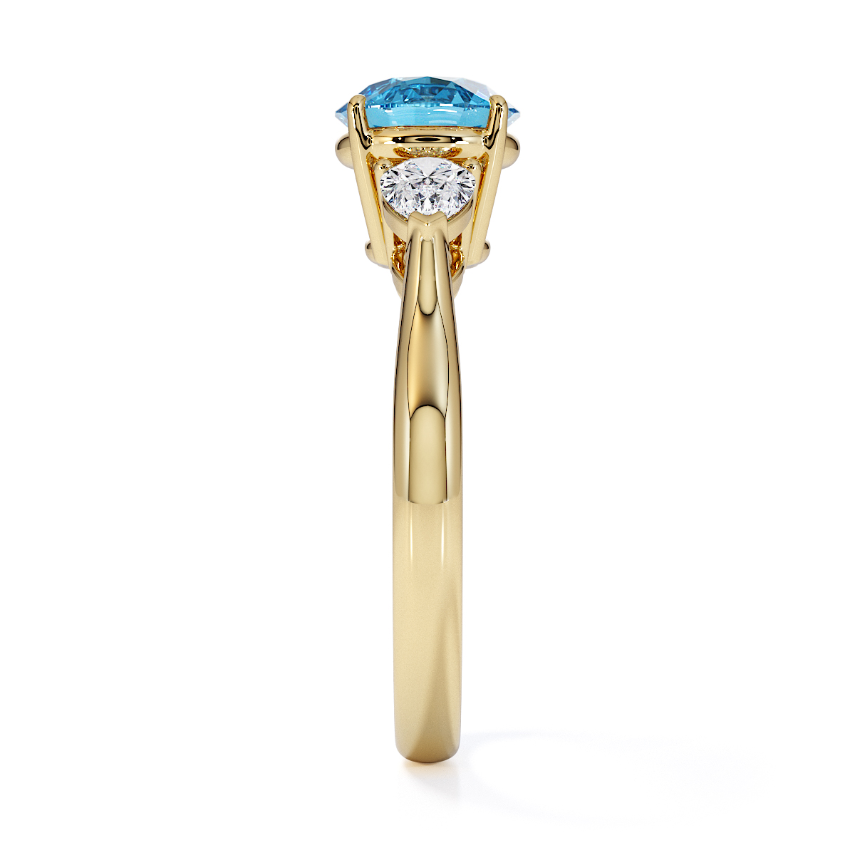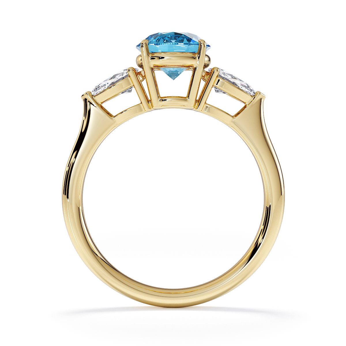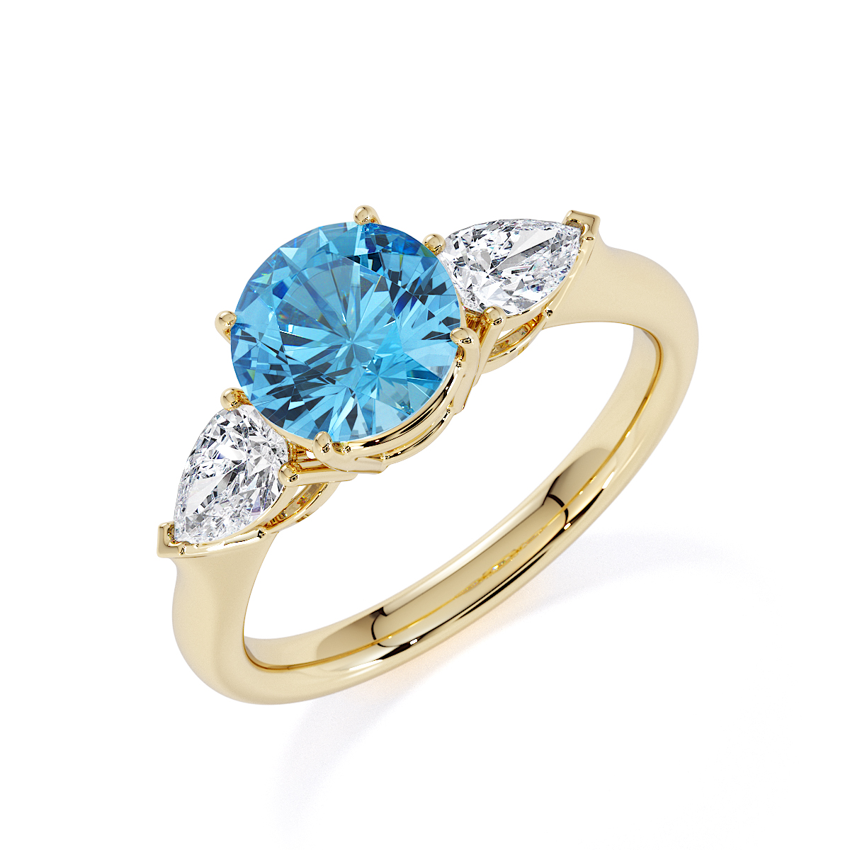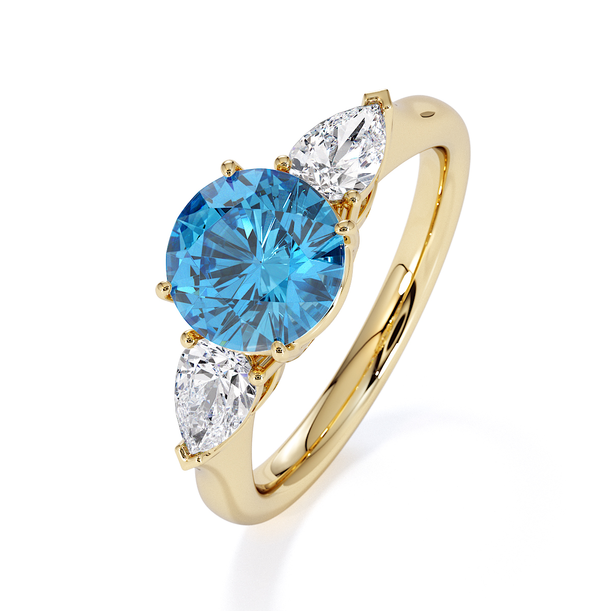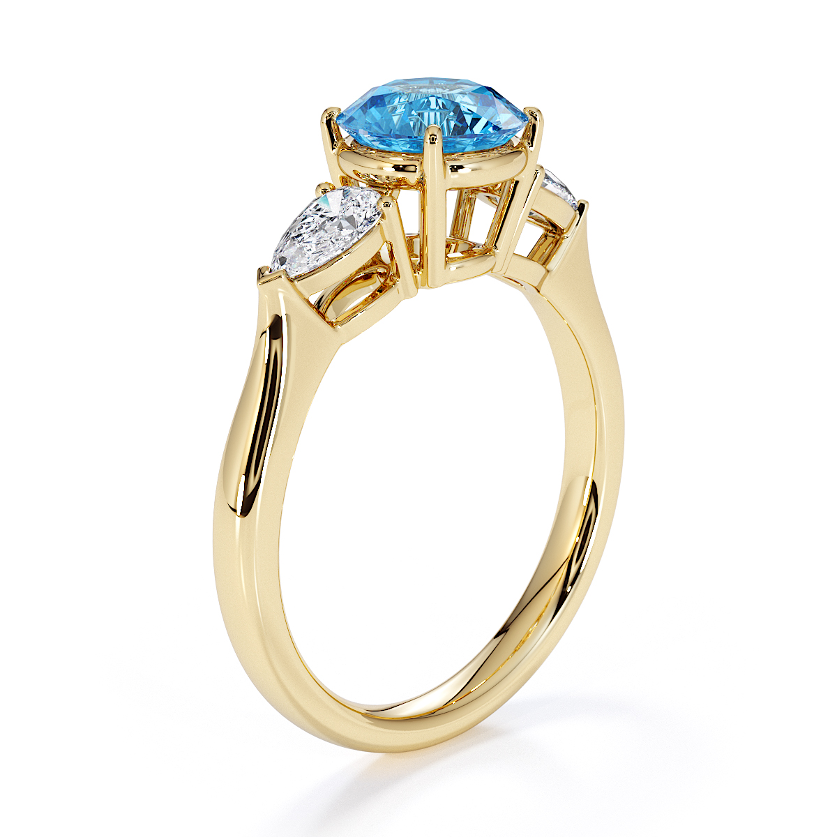 Introducing our exquisite round cut Blue Topaz and Diamond Engagement Ring, adorned with pear-shaped side stones delicately prong-set.