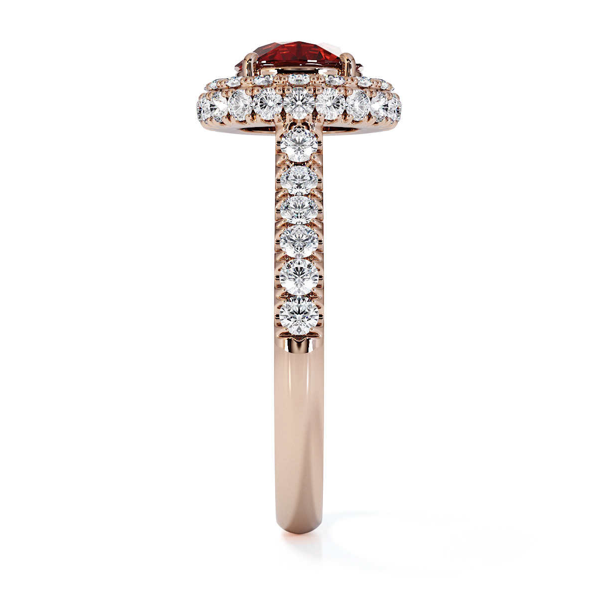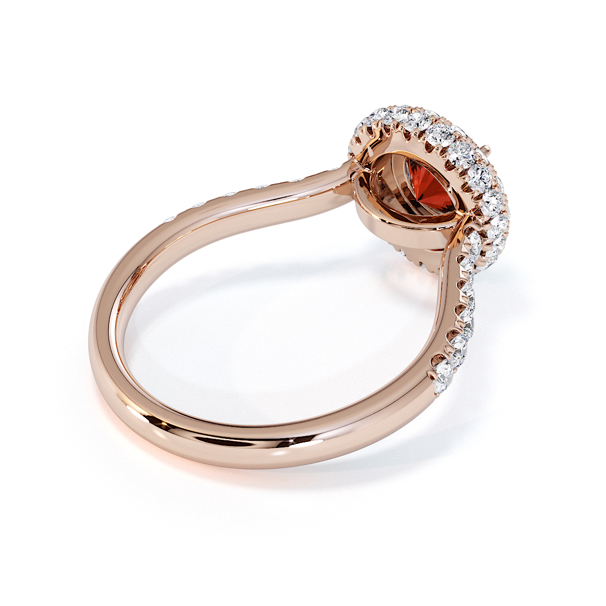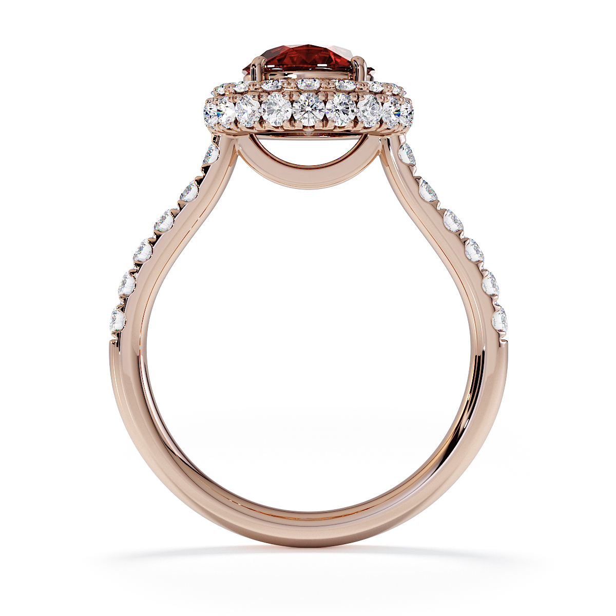 Experience timeless elegance with our exquisite Round Cut Garnet and Diamond Engagement Ring, featuring a halo of diamonds and prong-set stones. A perfect symbol of everlasting love and sophistication.