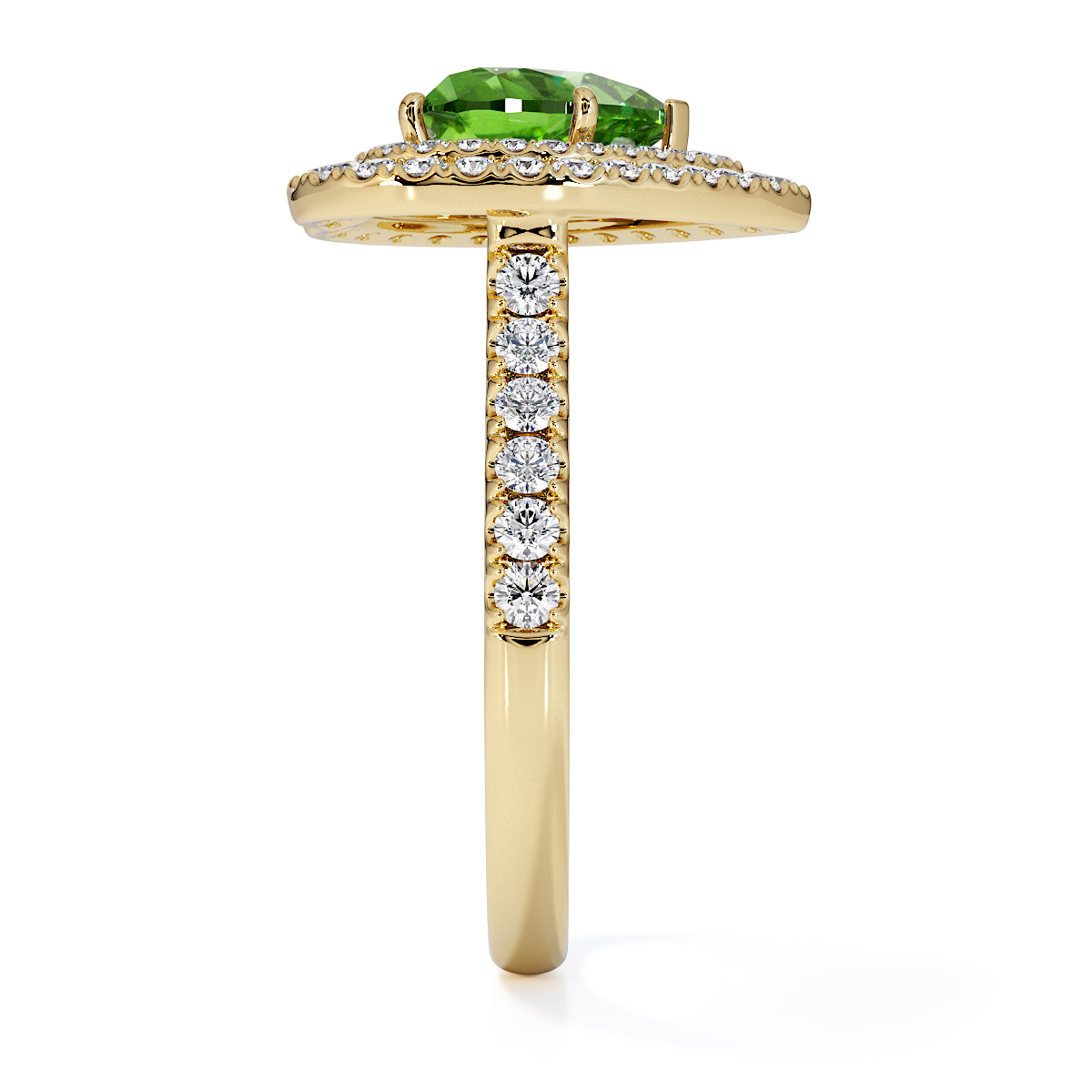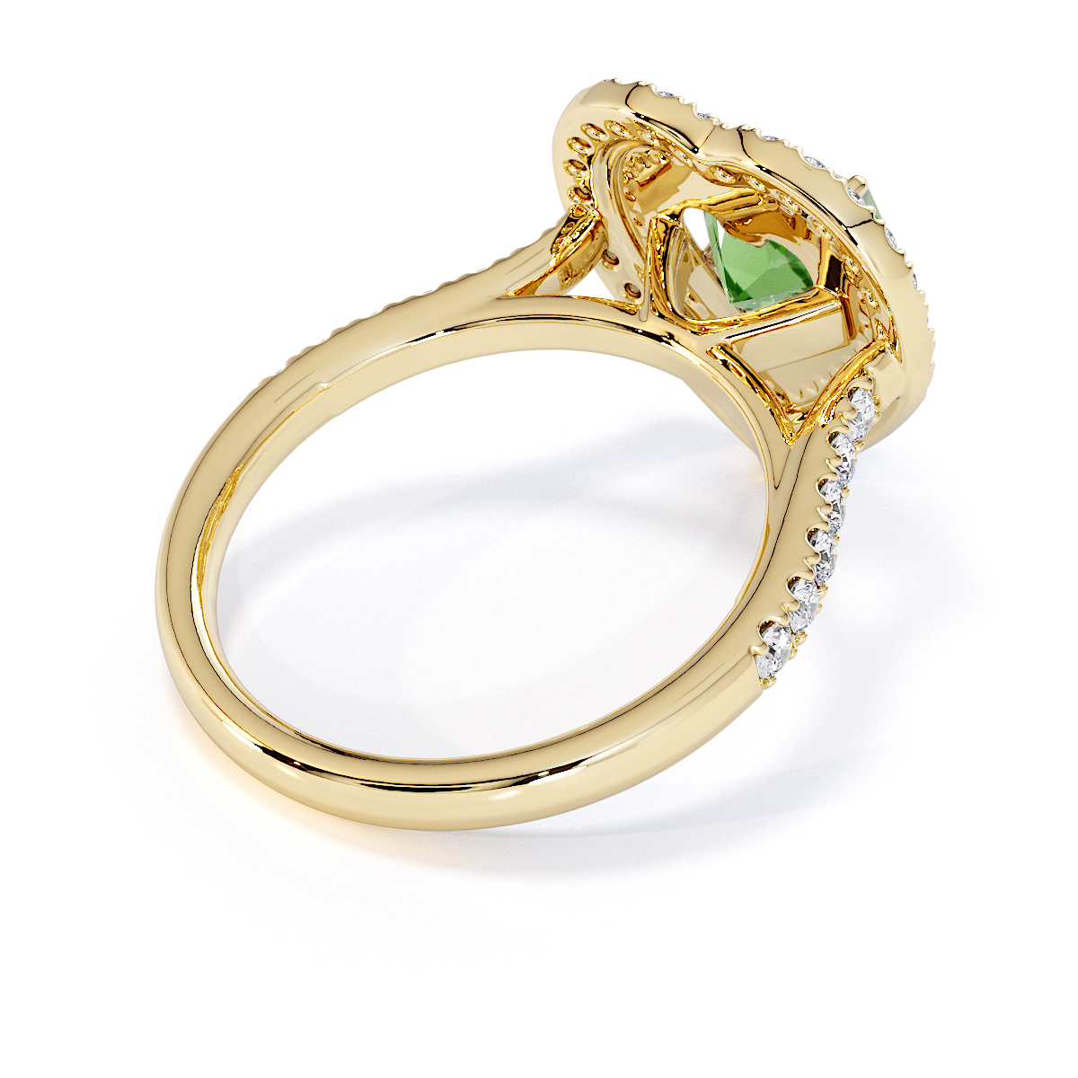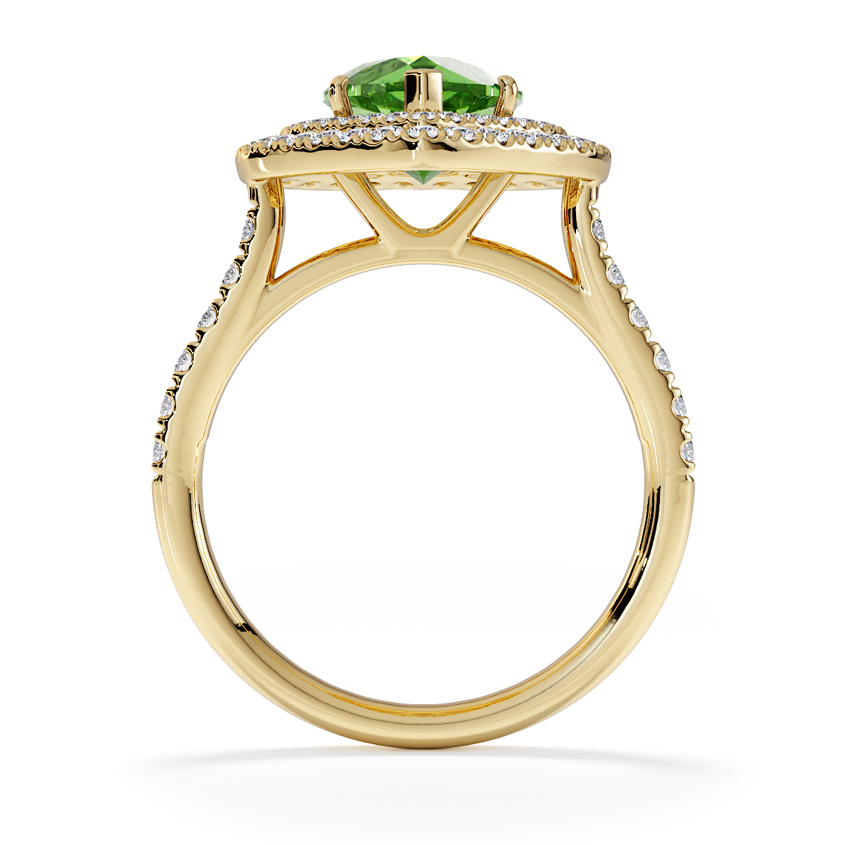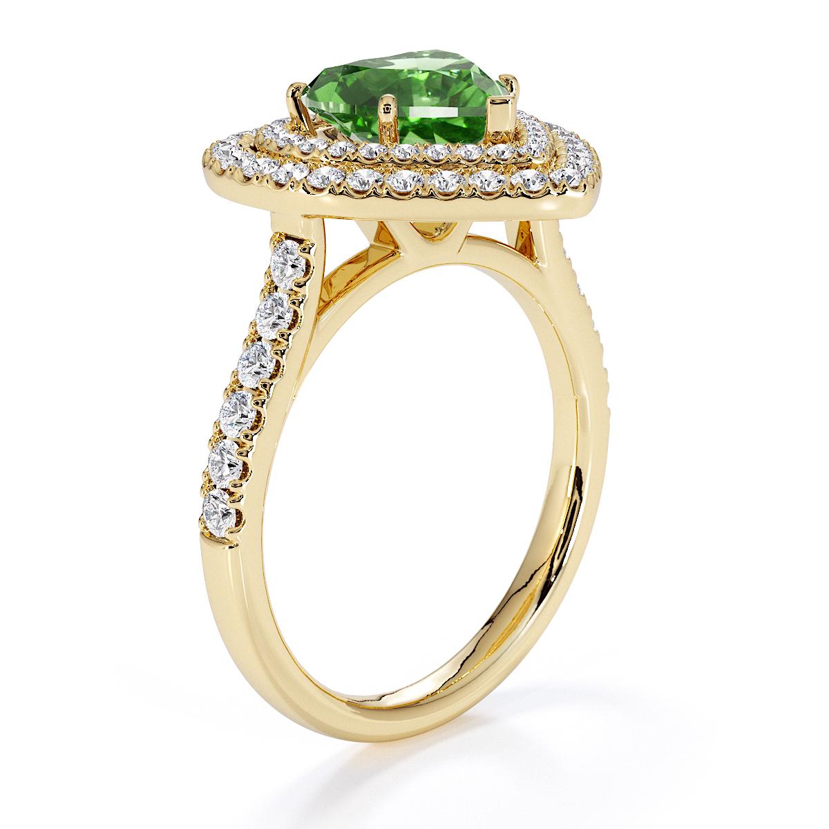 Introducing our dazzling heart-cut Green Tourmaline and Diamond Engagement Ring , featuring a captivating double halo of diamonds set in elegant prongs. It perfectly complements the wedding ring of your choice.