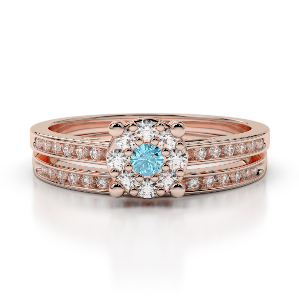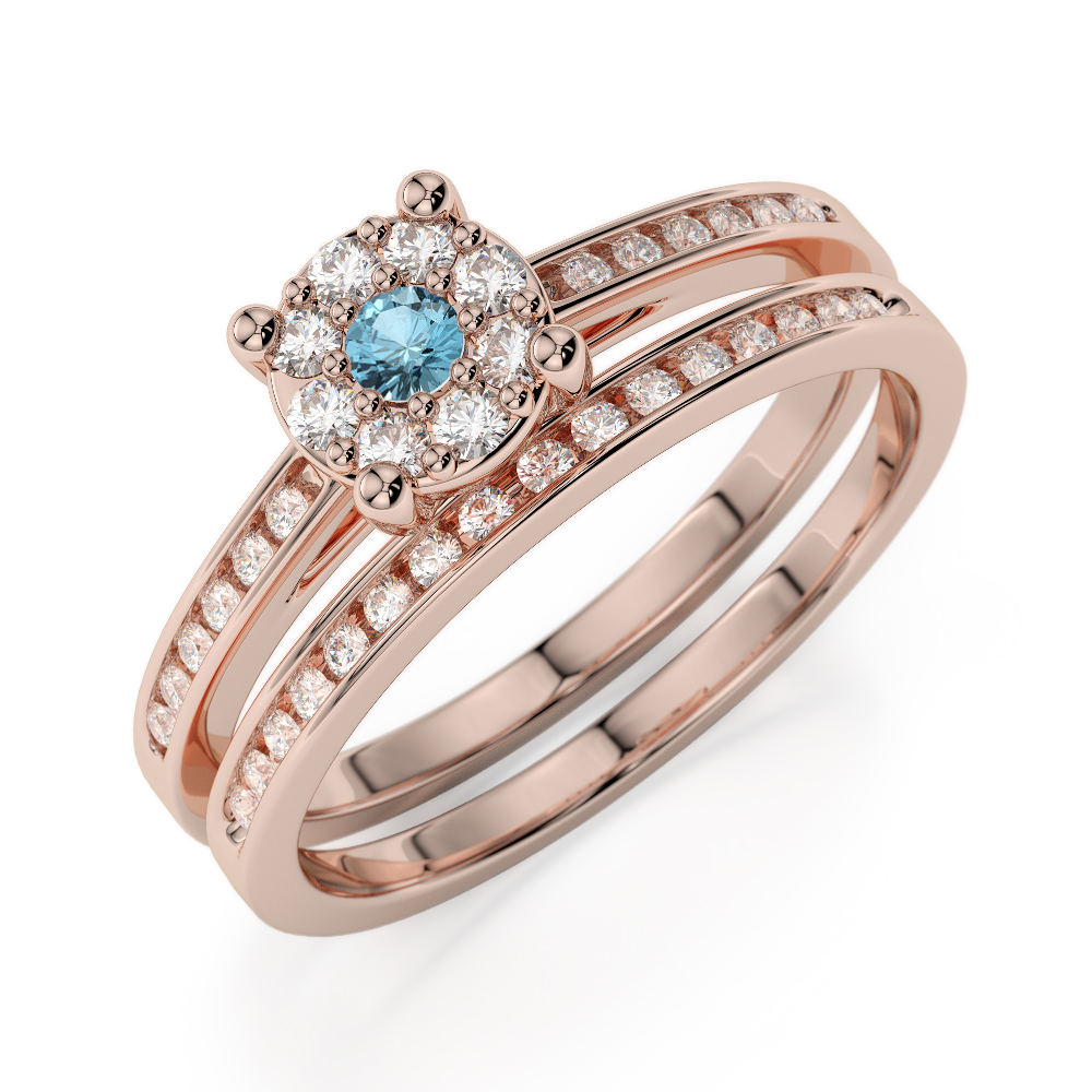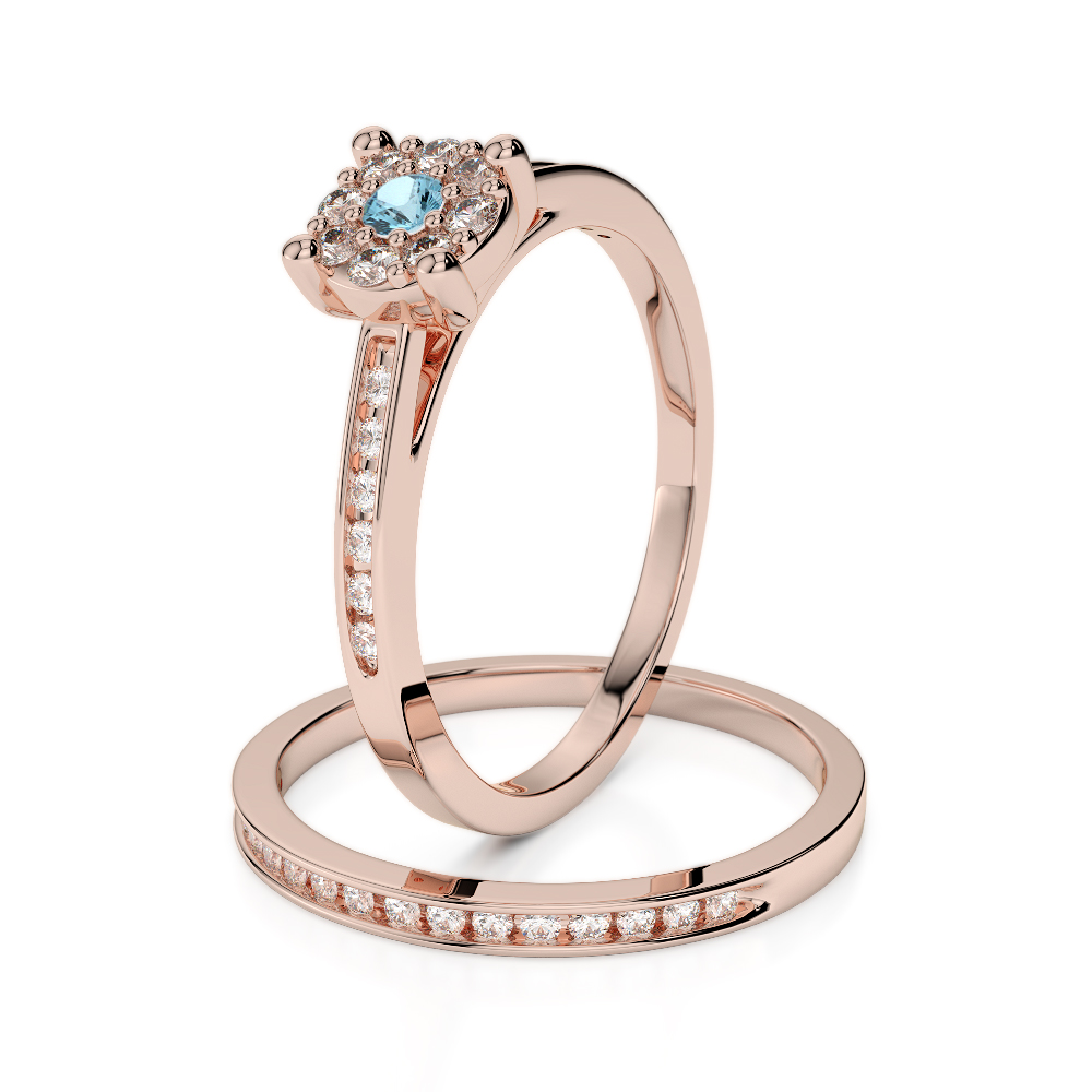 The Aquamarine is one of the four most precious gemstones in the world and is the star of the show in these beautiful bridal set rings. Featuring a stunning round brilliant cut Aquamarine in the centre flanked by exquisite diamonds across the shoulders, this is a fabulous choice for your special day. The wedding ring too is studded with glittering round brilliant cut diamonds and when worn with the engagement ring, the effect is just magical. If you are looking for elegant and timeless bridal set rings, this set really is the perfect choice.