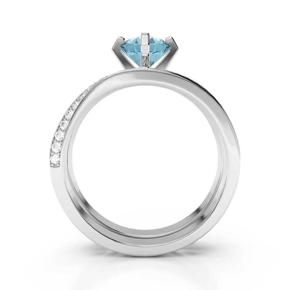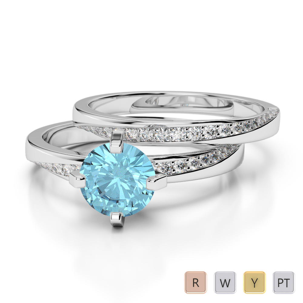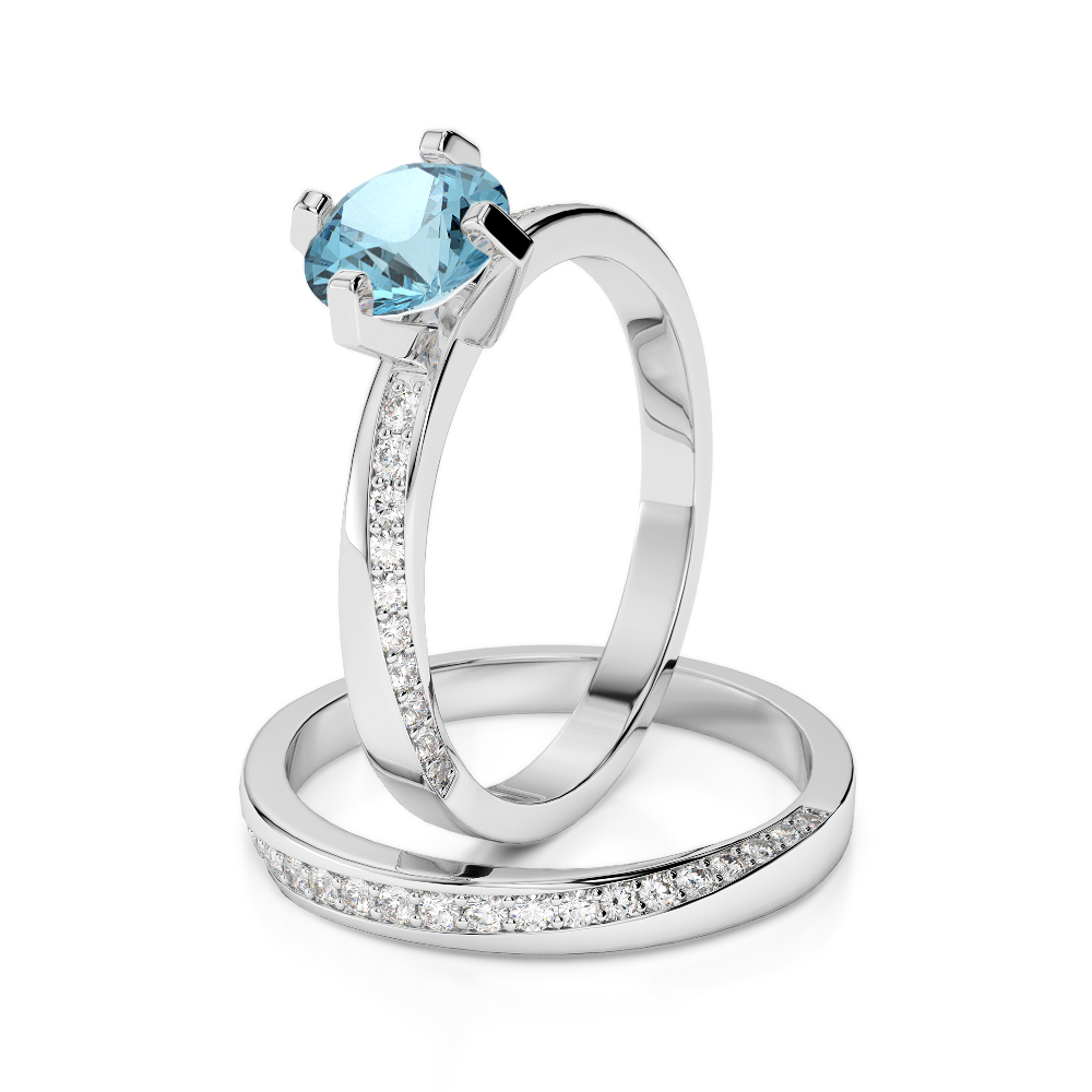 The Aquamarine is one of the four most precious gemstones in the world and is the star of the show in these beautiful bridal set rings. Featuring a stunning round brilliant cut Aquamarine in the centre flanked by exquisite diamonds across the shoulders, this is a fabulous choice for your special day. The wedding ring too is studded with glittering round brilliant cut diamonds and when worn with the engagement ring, the effect is just magical. If you are looking for elegant and timeless bridal set rings, this set really is the perfect choice