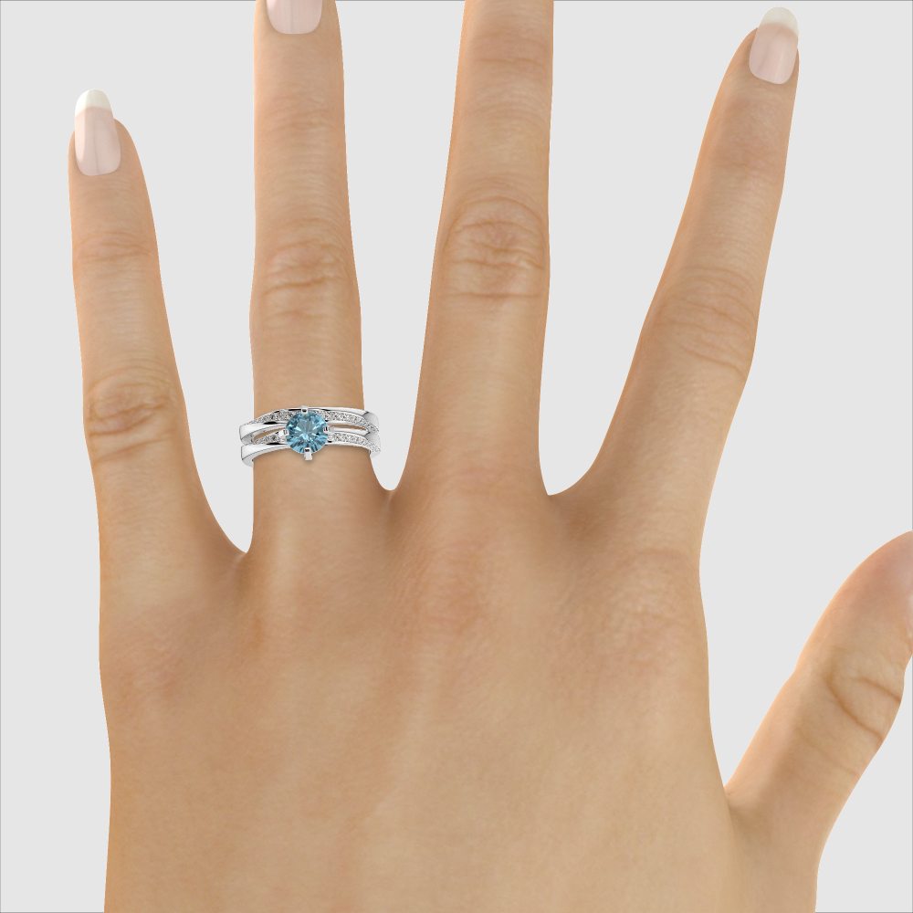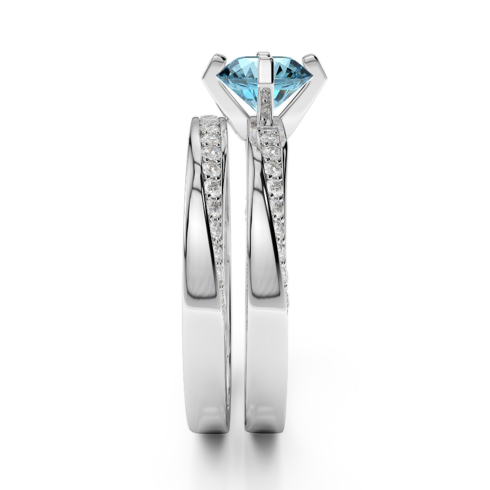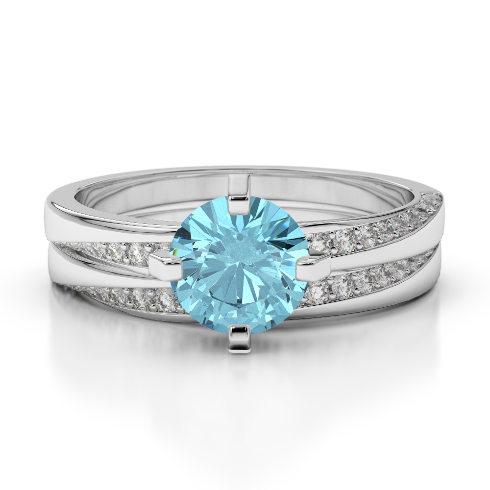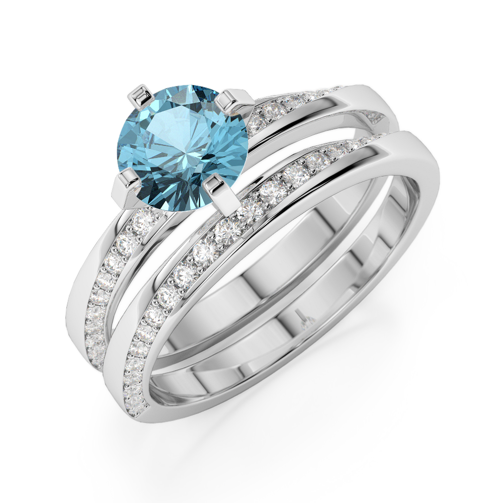 The Aquamarine is one of the four most precious gemstones in the world and is the star of the show in these beautiful bridal set rings. Featuring a stunning round brilliant cut Aquamarine in the centre flanked by exquisite diamonds across the shoulders, this is a fabulous choice for your special day. The wedding ring too is studded with glittering round brilliant cut diamonds and when worn with the engagement ring, the effect is just magical. If you are looking for elegant and timeless bridal set rings, this set really is the perfect choice