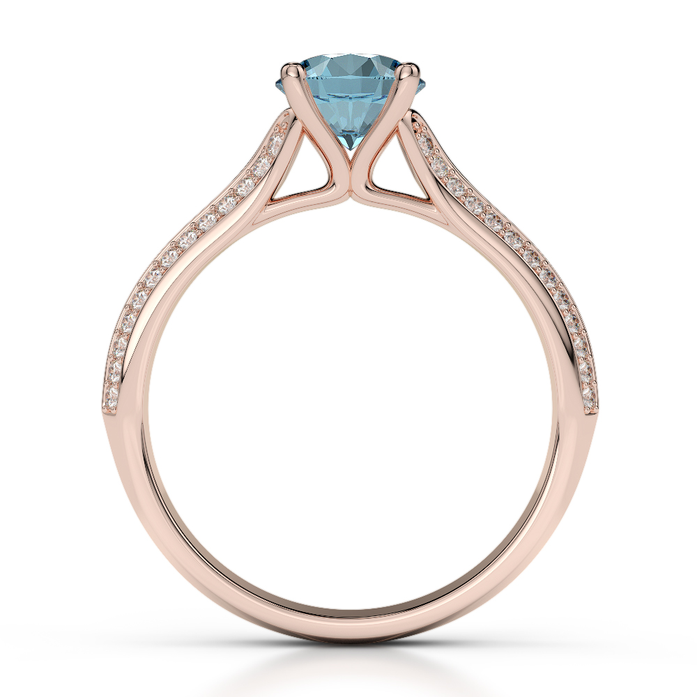 A beautiful Rose Gold Diamond and Aquamarine Engagement Ring studded with naturally mined conflict free Diamonds. Beautifully designed to fit your love finger adding comfort with style to your look.