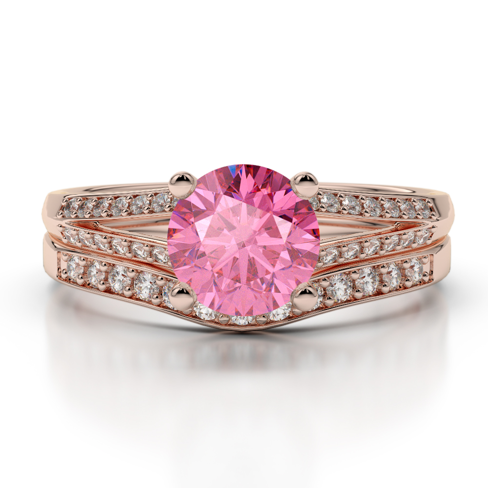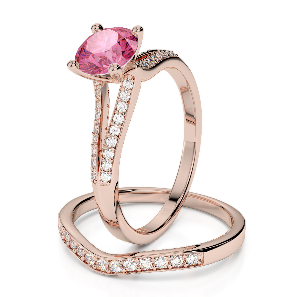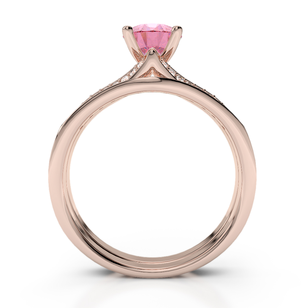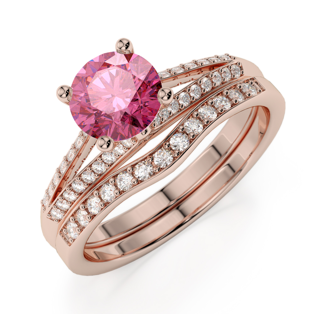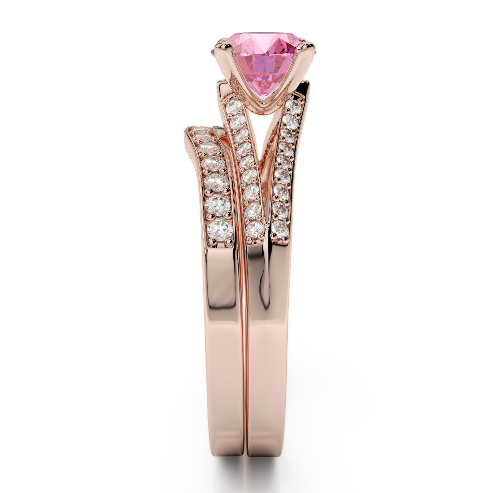 Gold / Platinum Round cut Pink Tourmaline and Diamond Bridal Set Ring AGDR-2037