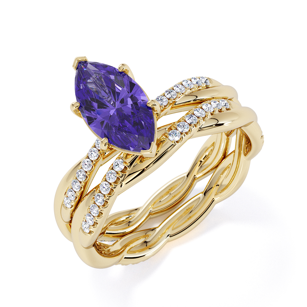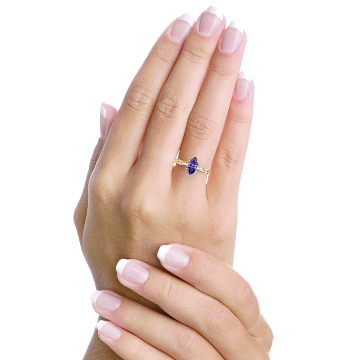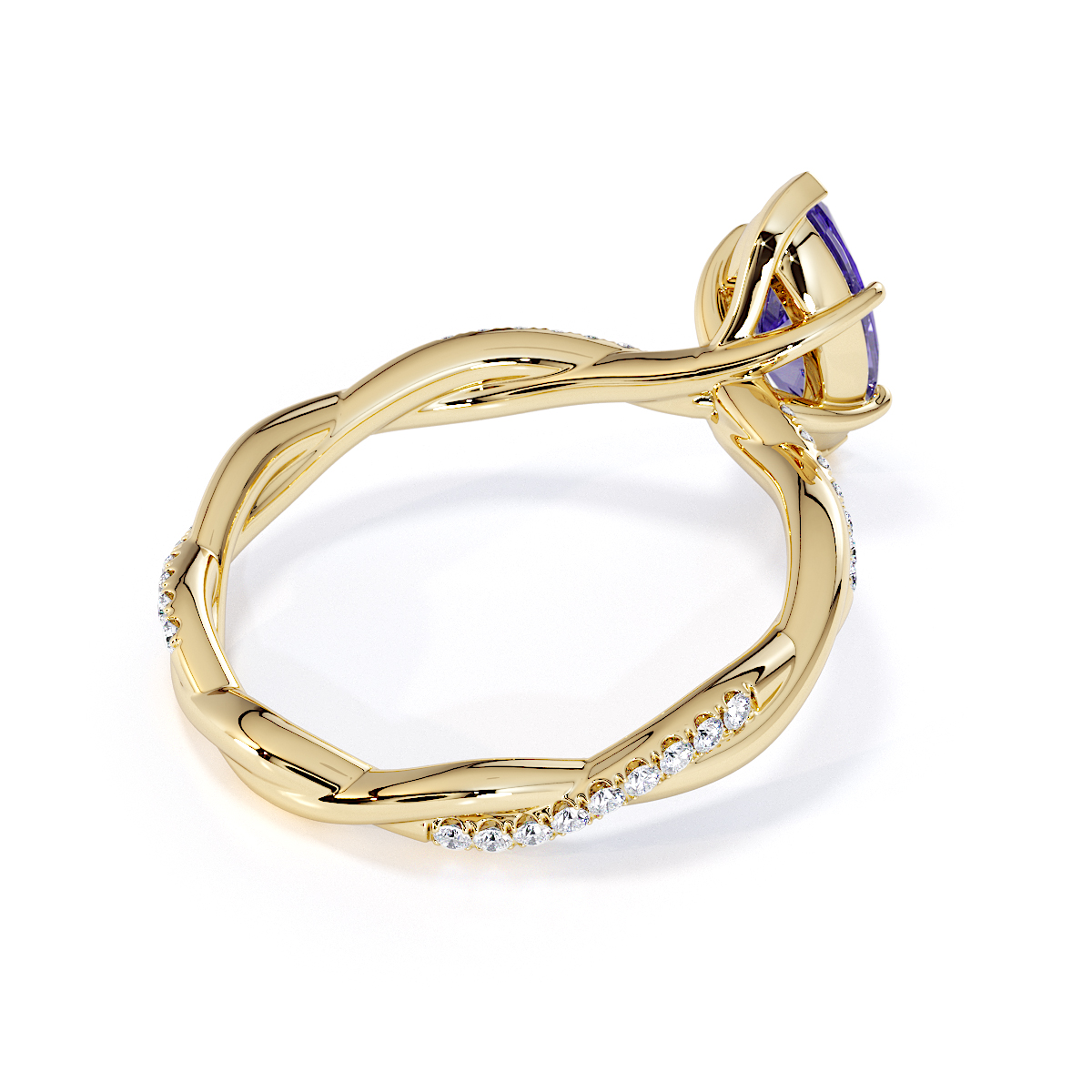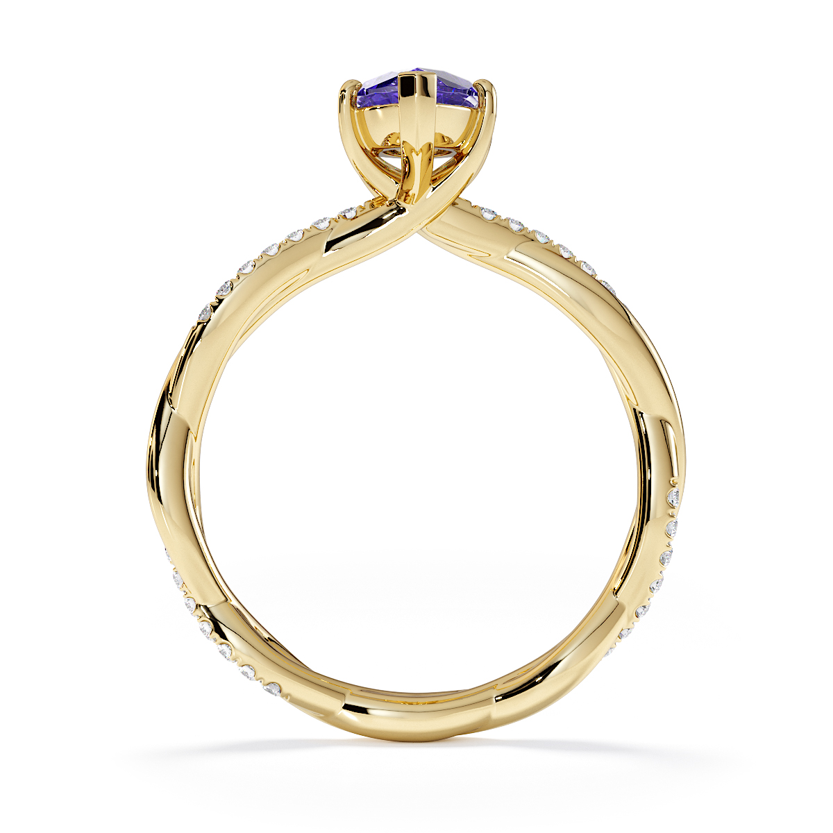 Presenting our stunning Marquise Cut Tanzanite and Diamond Engagement Ring. The ring is further adorned with prong-set diamonds running up the twisted shoulders. It perfectly complements the wedding ring of your choice.