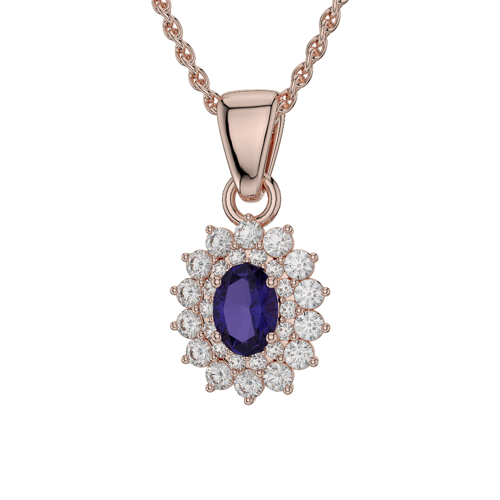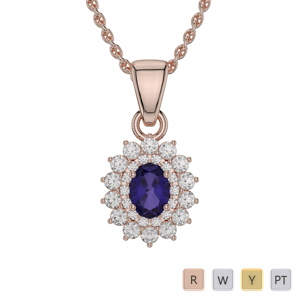 Oval Shape Tanzanite and Diamond Necklaces in Gold / Platinum AGDNC-1073